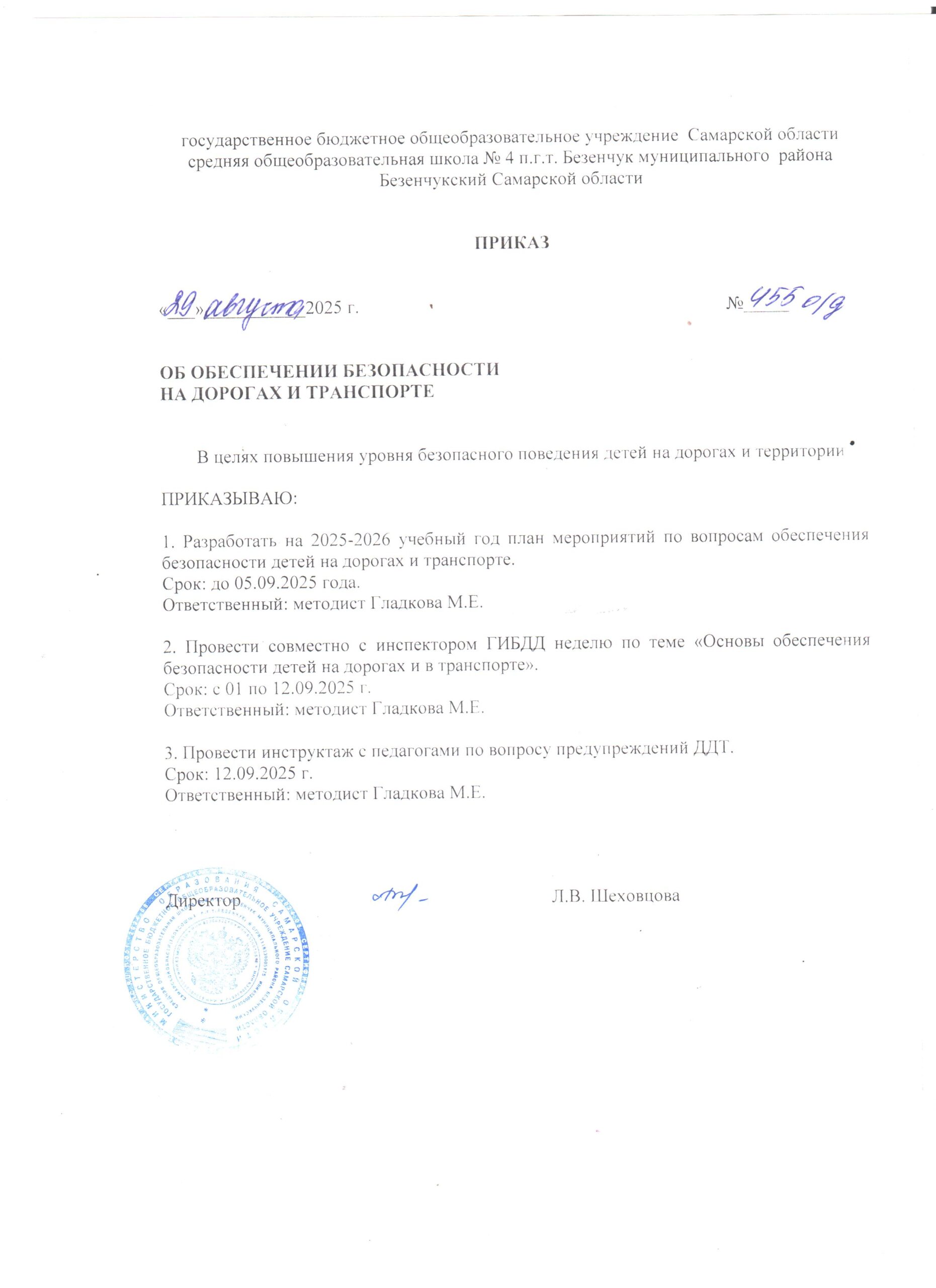Приказ №455-од от 29.08.25 «Об обеспечении безопасности на дорогах и транспорте«
